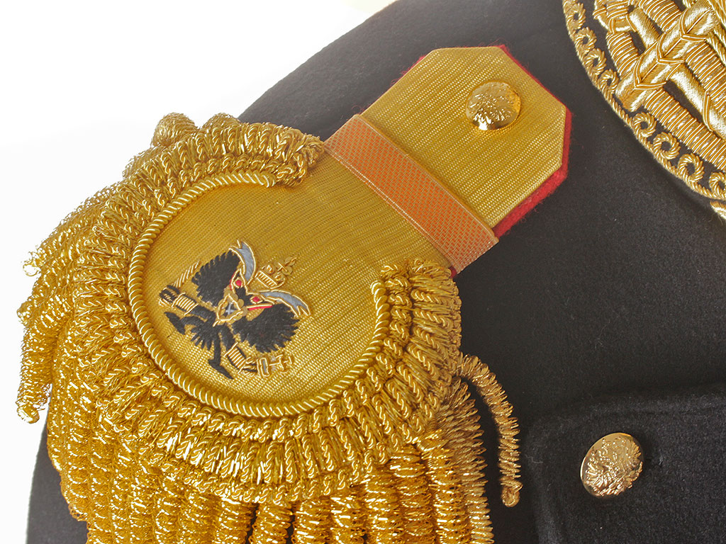 Эполеты гвардейского типа генеральские с бахромой, золотое тканое поле, красный ...
