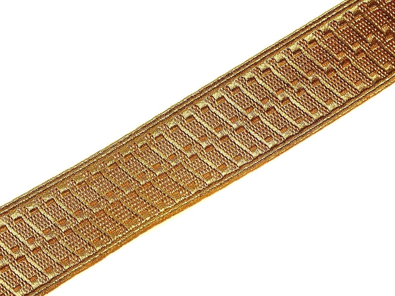 Галун полуштабский широкий. Использовался в гвардии и армейской гвардейской кавалерии, а также некоторых казачьих частях для обшивки унтер-офицерских воротников и обшлагов, армейских и гвардейских знаменных панталеров, шевронов за выслугу лет, галун для обшивки офицерских вальтрапов и ольстр (седельных кобур), а также барабанных завесей.