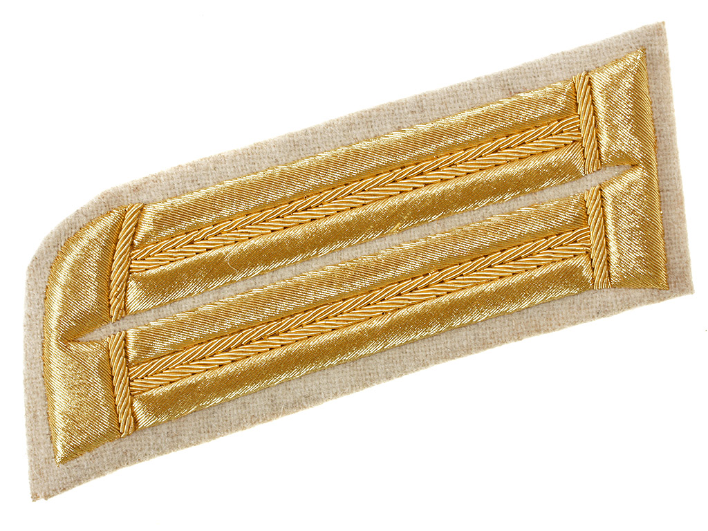 Расшитые золотом петлицы и обшлага на воротник для парадного мундира офицеров армейской пехоты образца 1909 года, такие петлицы белого цвета носили офицеры третьих полков армейской пехоты и армейских гренадер, полк в составе дивизии обозначался цветом воротника, первый полк Красный, второй-Синий, третий-Белый и четвертый цвета мундира, у офицеров зеленый, а у солдат черный.