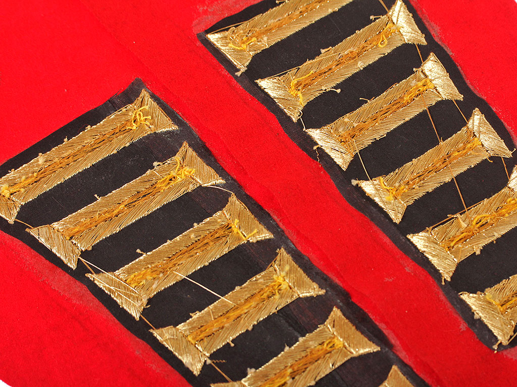 Расшитый золотом воротник, обшлага и нагрудные лацканы для мундира офицеров офицера Роты Дворцовых гренадер образца 1855-1921 годов.