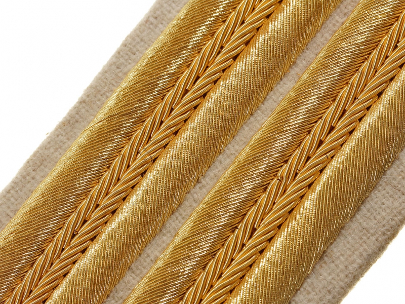 Расшитые золотом петлицы на воротник для парадного мундира офицеров армейской пехоты образца 1909 года, такие петлицы белого цвета носили офицеры третьих полков армейской пехоты и армейских гренадер, полк в составе дивизии обозначался цветом воротника, первый полк Красный, второй-Синий, третий-Белый и четвертый цвета мундира, у офицеров зеленый, а у солдат черный.