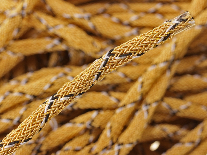 Шнур для аксельбантов золотого цвета с черно-белым просветом.