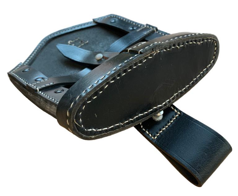 Чехол для немецкой складной лопаты (нем. Klappspaten). Самая ранняя модель. Чехол с закрытым задником и клапаном, который полностью закрывает верхний край лопаты.