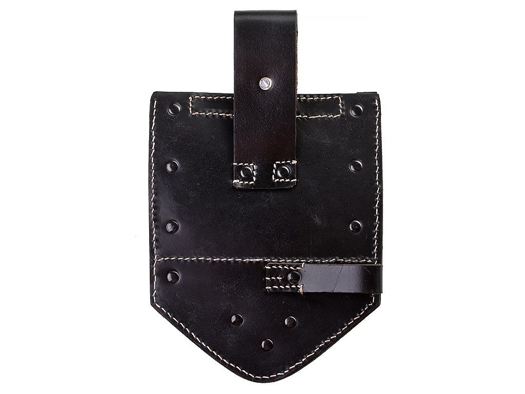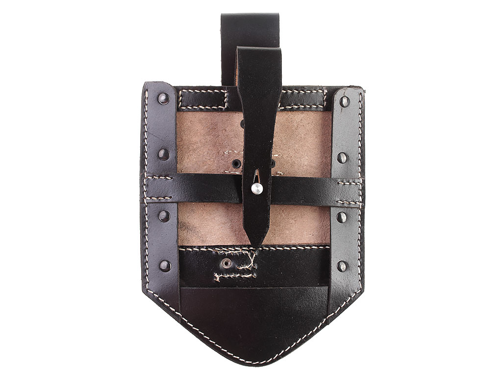 Ранние чехлы для складной лопаты (Taschefur Klappspaten) были из черной искусственной или натуральной кожи, но поздние изготавливались из светло-бронзового «пресс-ш гоффа» со сплошной задней лопастыо и внешним ободком из натуральной кожи. Лопатка накрывалась сверху крышкой и удерживалась на месте широким кожаным ремешком, пристегивавшимся к крючку на тонком поперечном ремешке. Кончик кожаного футляра лопаты оснащался металлическим протектором.