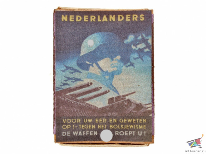 Оригинальный коробок спичек времён войны, коробочка сделана из шпона, будто тонкая фанерная, наклейка современная в виде агитационного плаката СС