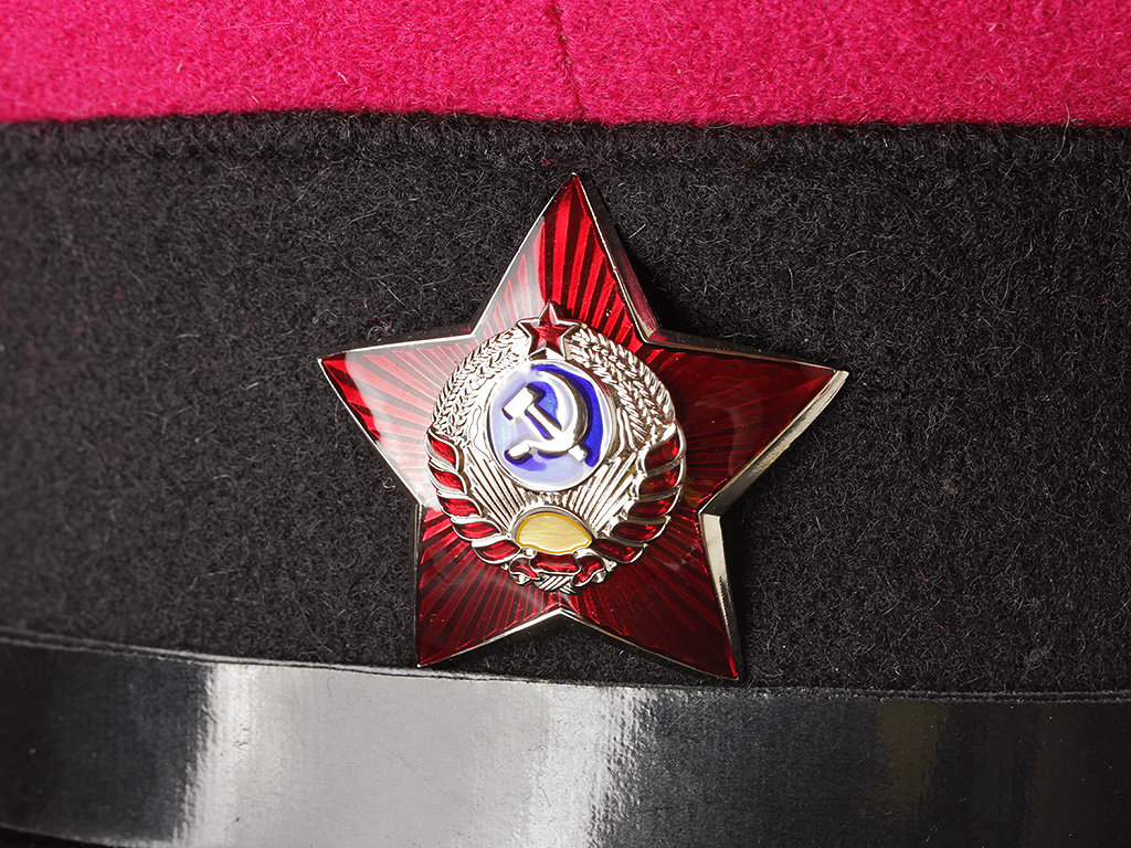 На передней части околыша фуражек и окола папах у офицеров и сержантов располагалась пятиконечная красноармейская звезда установленного образца, а у генералов — кокарда, как в Советской Армии.