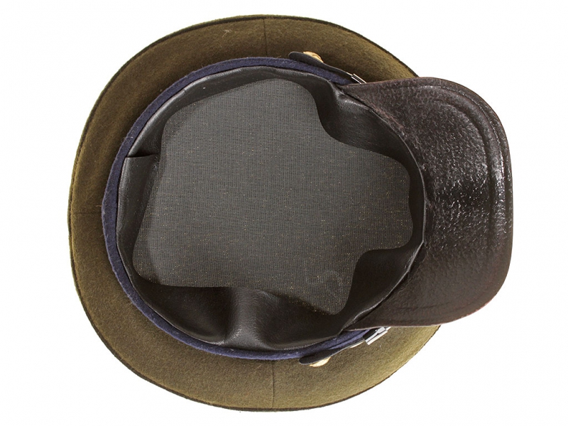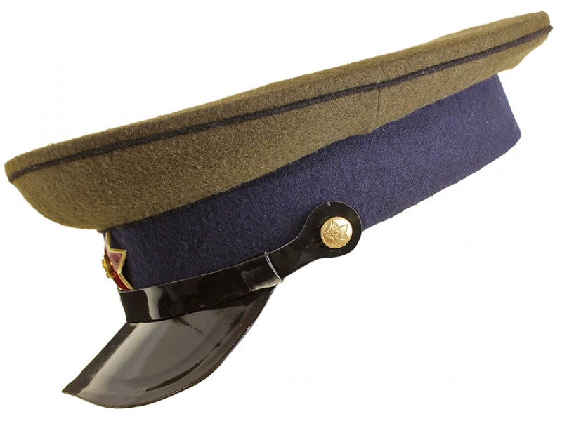 Темно-синий околыш, тулья цвета хаки, кант черного цвета.