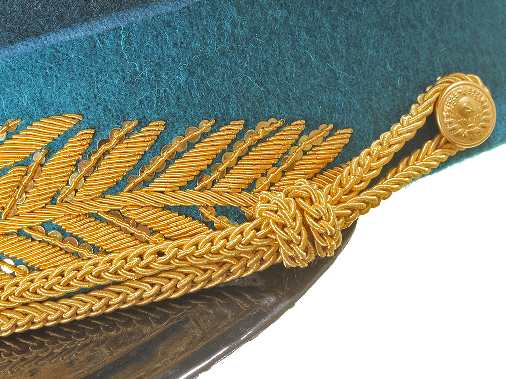 Копия очень высокого качества. Шитье на околыше выполнено тремя видами металлизированной золоченой канители.