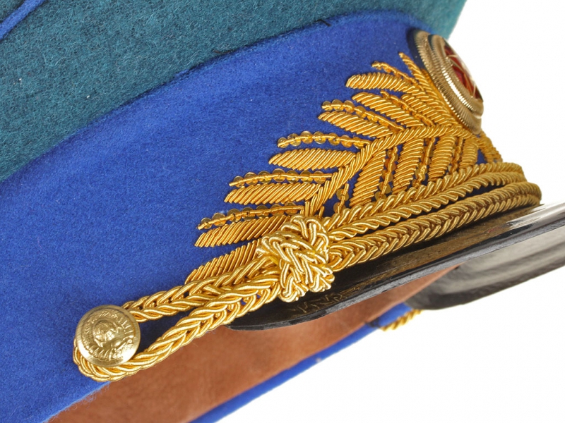 Копия очень высокого качества. Шитье на околыше выполнено тремя видами металлизированной золоченой канители.