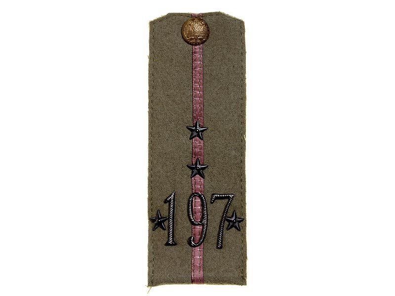 Предписывалась высочайшим императорским указом для ношения на погонах офицеров при походной форме, начиная 1914 года. На практике в начале войны это не всегда исполнялось, и многие офицеры щеголяли с золотыми погонами, что стоило больших потерь ранеными и убитыми, только к 1915-16 году распространение получили полевые погоны с черными"воронёными" цифрами и прочими знаками. На сегодняшний день эта хорошая для маскировки традиция, придуманная русским военным министерством, сохранилась в армии США.