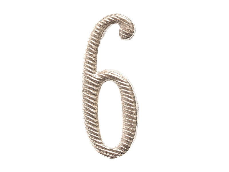 Цифра "6" погонная посеребренная высотой 32 мм. Изготовлена из бронзы и покрыта серебром - не краской под серебро, а согласно старой технологии, принятой в дореволюционное время.