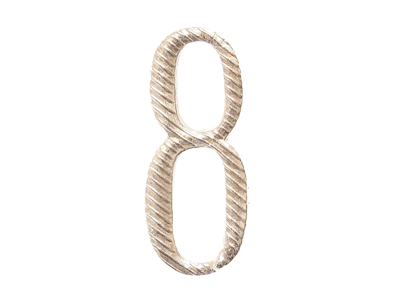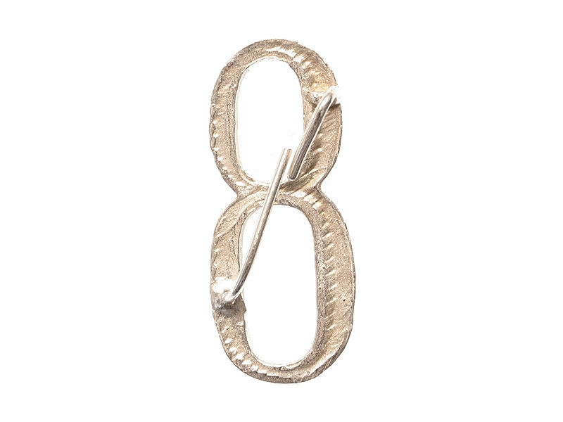 Цифра "8" погонная посеребренная высотой 32 мм. Изготовлена из бронзы и покрыта серебром - не краской под серебро, а согласно старой технологии, принятой в дореволюционное время.