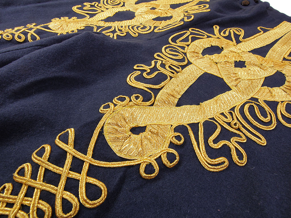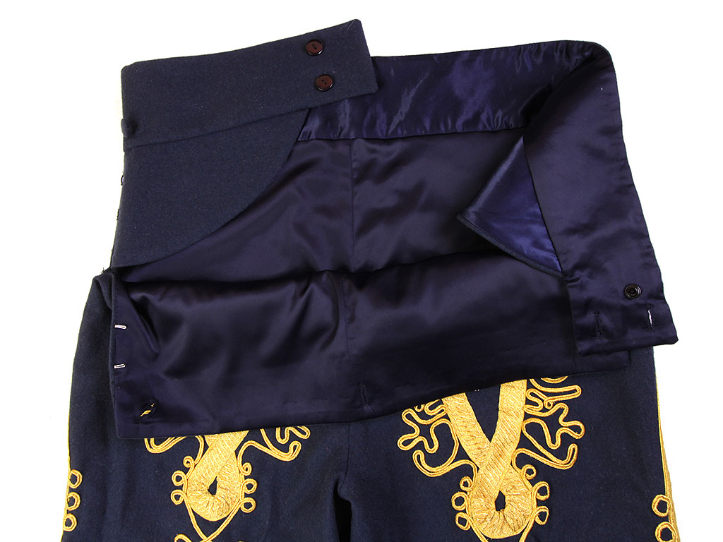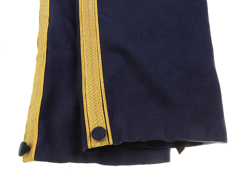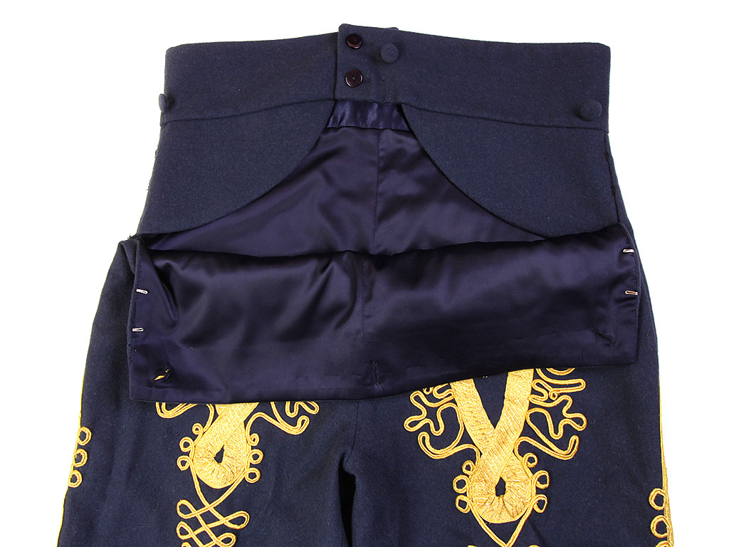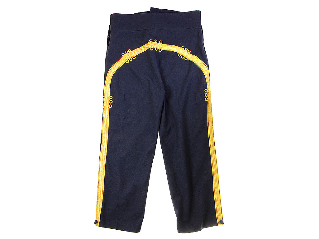 Синие, богато расшитые золотом чакчиры офицера - гусара Лейб-гвардии Гусарского Его Величества полка на 1812 год. Униформа этого покроя и расцветки существовала в Лейб-Гусарском полку (в то время он единственный из гусарских был гвардейским, остальные были армейскими) с 1809 по 1817 год (указом от 25 апреля 1809 года темно-синие чакчиры были введены в Лейб-гвардии Гусарском полку взамен белых). Именно такие чакчиры входили в комплект гусарской униформы в Отечественную войну 1812 года. Синее сукно, на лицевой стороне золотое шитье - плетение в виде "гусарского узла".