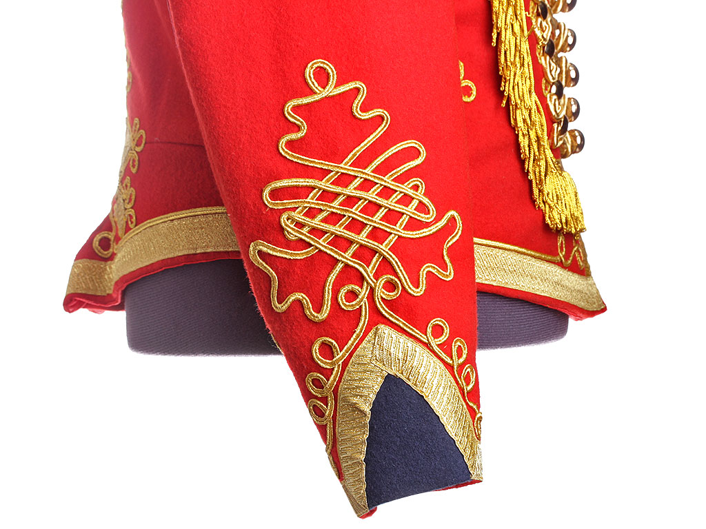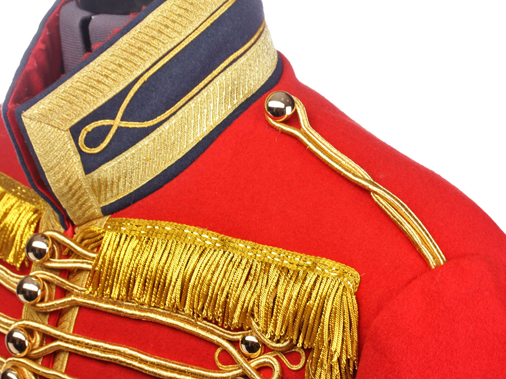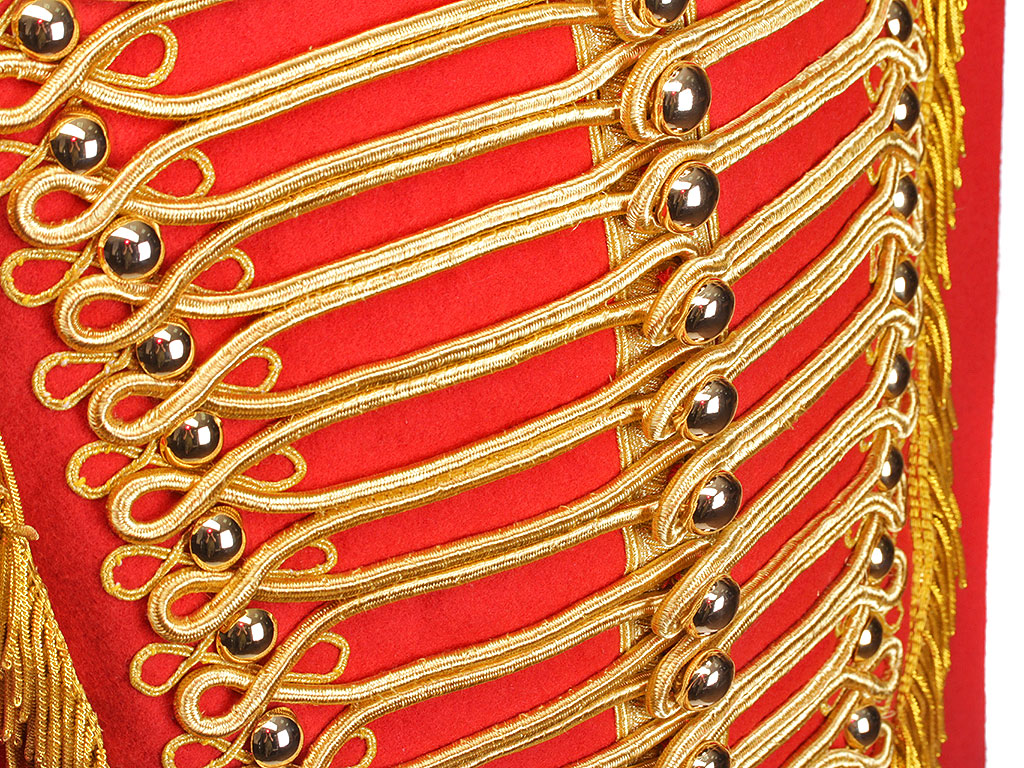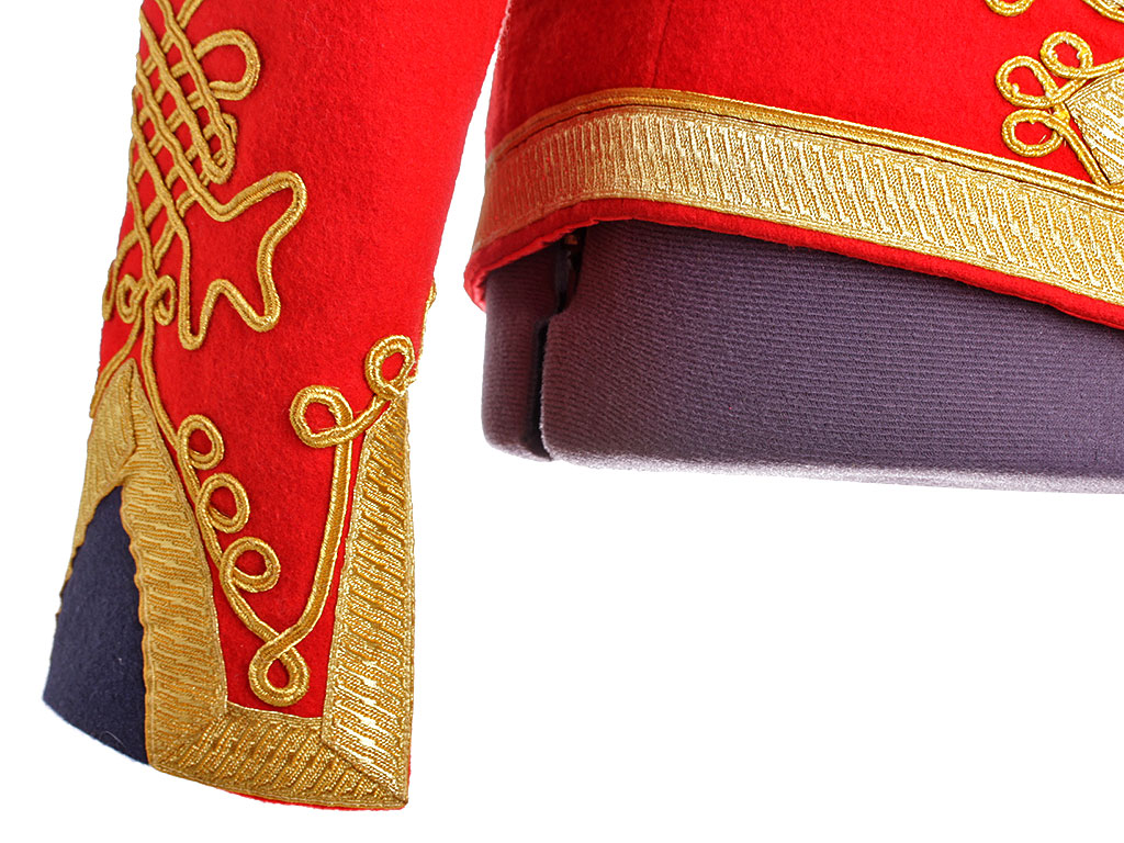 Доломан офицера - гусара Лейб-гвардии Гусарского Его Величества полка на 1812 год. Алый доломан с синим воротником и обшлагами, богато расшитый золотым шнуром, с вызолоченными пуговицами. Униформа этого покроя и расцветки существовала в Лейб-Гусарском полку (в то время он единственный из гусарских был гвардейским, остальные были армейскими) с 1809 по 1817 год. В Отечественную войну 1812 года наши гвардейские гусары воевали и побеждали именно в таких мундирах.