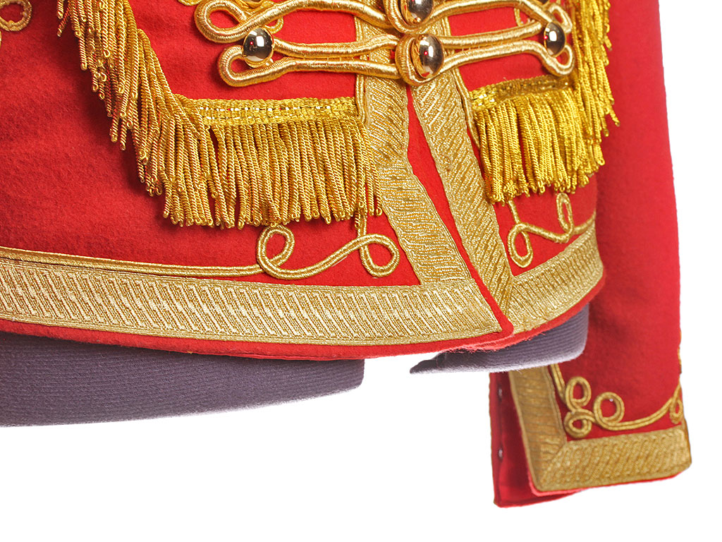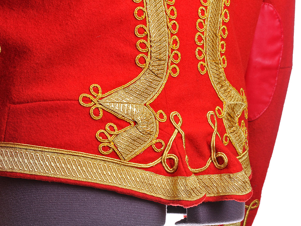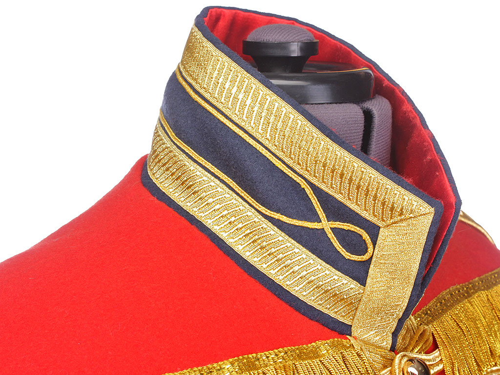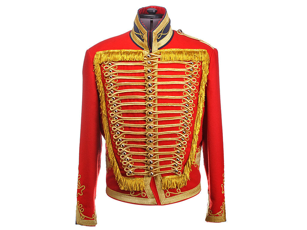 Доломан офицера - гусара Лейб-гвардии Гусарского Его Величества полка на 1812 год. Алый доломан с синим воротником и обшлагами, богато расшитый золотым шнуром, с вызолоченными пуговицами. Униформа этого покроя и расцветки существовала в Лейб-Гусарском полку (в то время он единственный из гусарских был гвардейским, остальные были армейскими) с 1809 по 1817 год. В Отечественную войну 1812 года наши гвардейские гусары воевали и побеждали именно в таких мундирах.