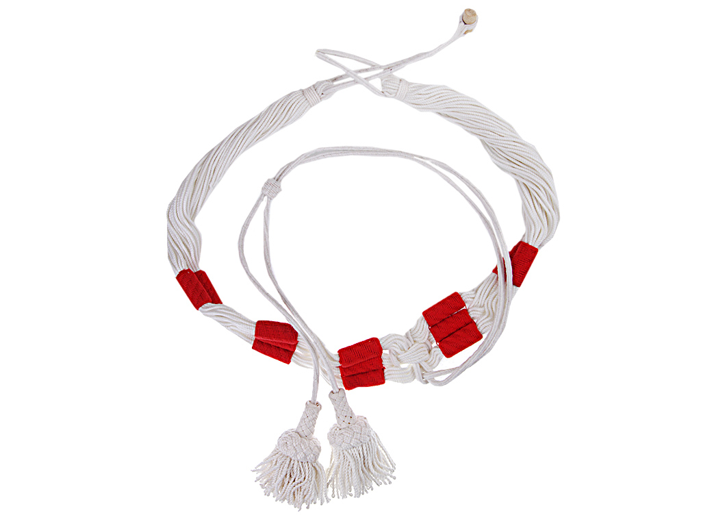 Белый пояс с красными гомбами и белыми кистями нижних чинов Сумского гусарского полка (сочетание этих цветов встречается также у Белорусского и Ольвиопольского гусарских полков: но у них - красные пояса с белыми кистями и гомбами).