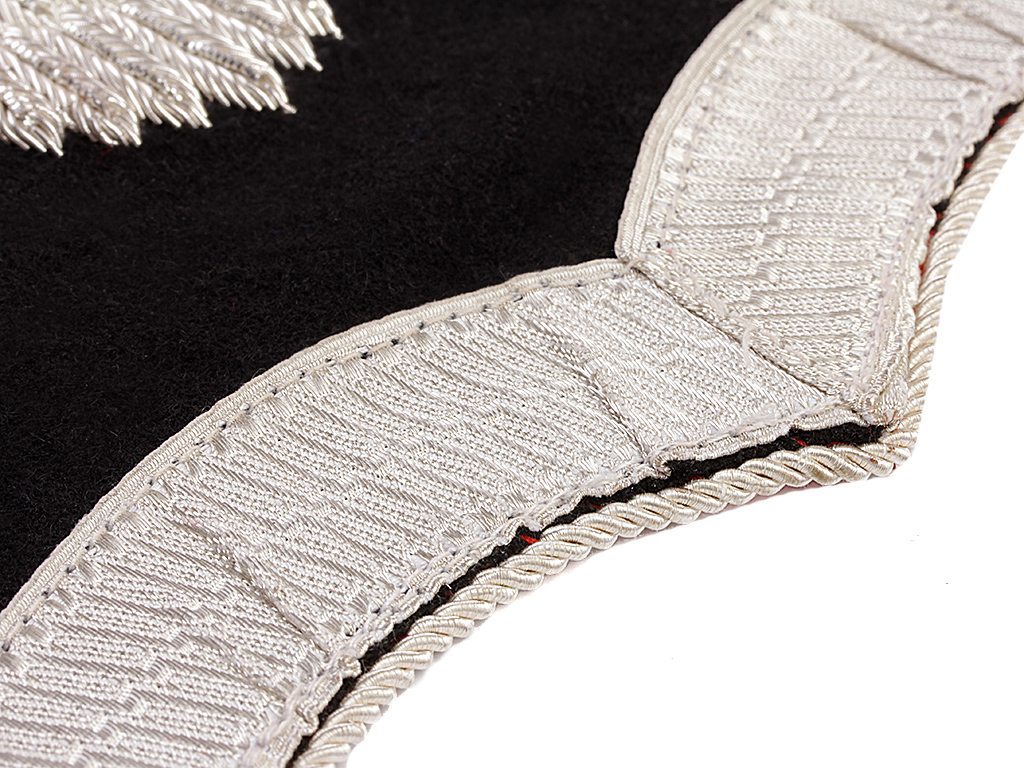 Ташка офицера Александрийского гусарского полка имеет основу из красной кожи тонкой выделки, с верхней планкой, имеющей три латунных кольца для крепления к пасовым ремням. Крышка покрыта сукном черного цвета с серебряным изображением государственного герба и серебряной галунной обшивкой.