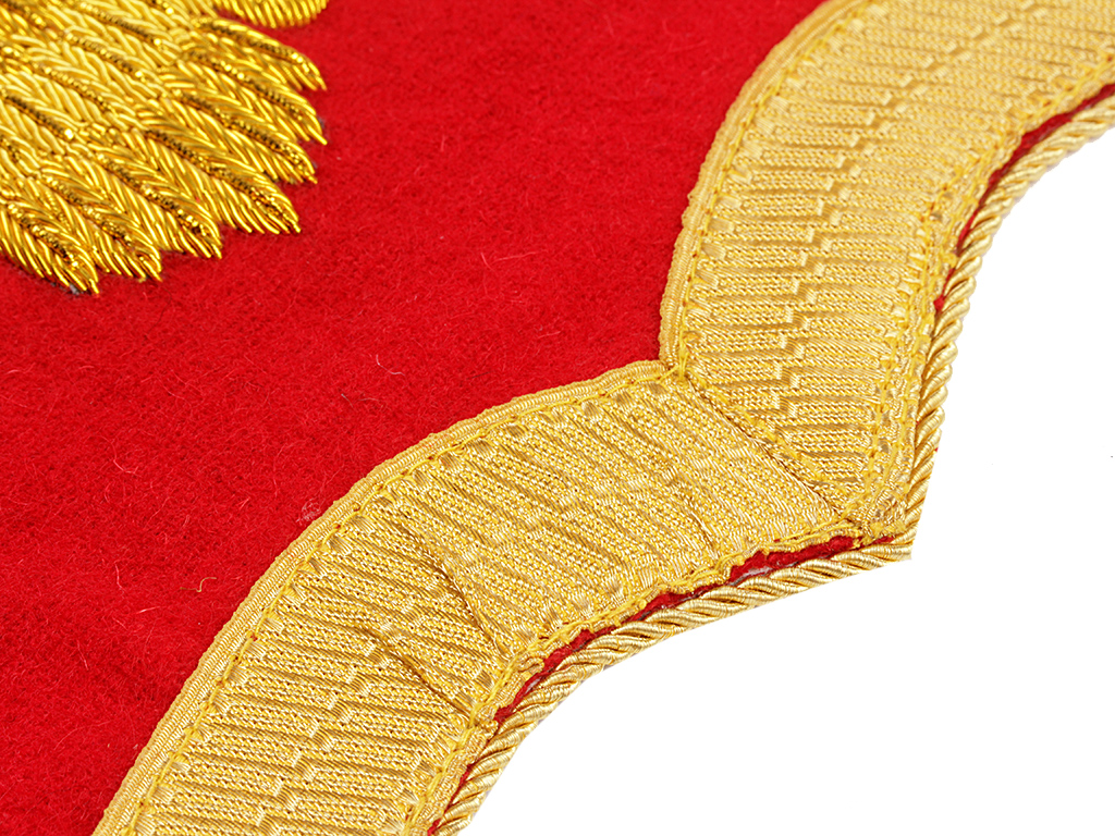Ташка офицера Изюмского гусарского полка имеет основу из красной кожи тонкой выделки, с верхней планкой, имеющей три латунных кольца для крепления к пасовым ремням. Крышка покрыта сукном красного цвета с золотым изображением государственного герба и золотой галунной обшивкой.
