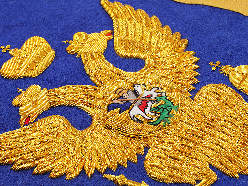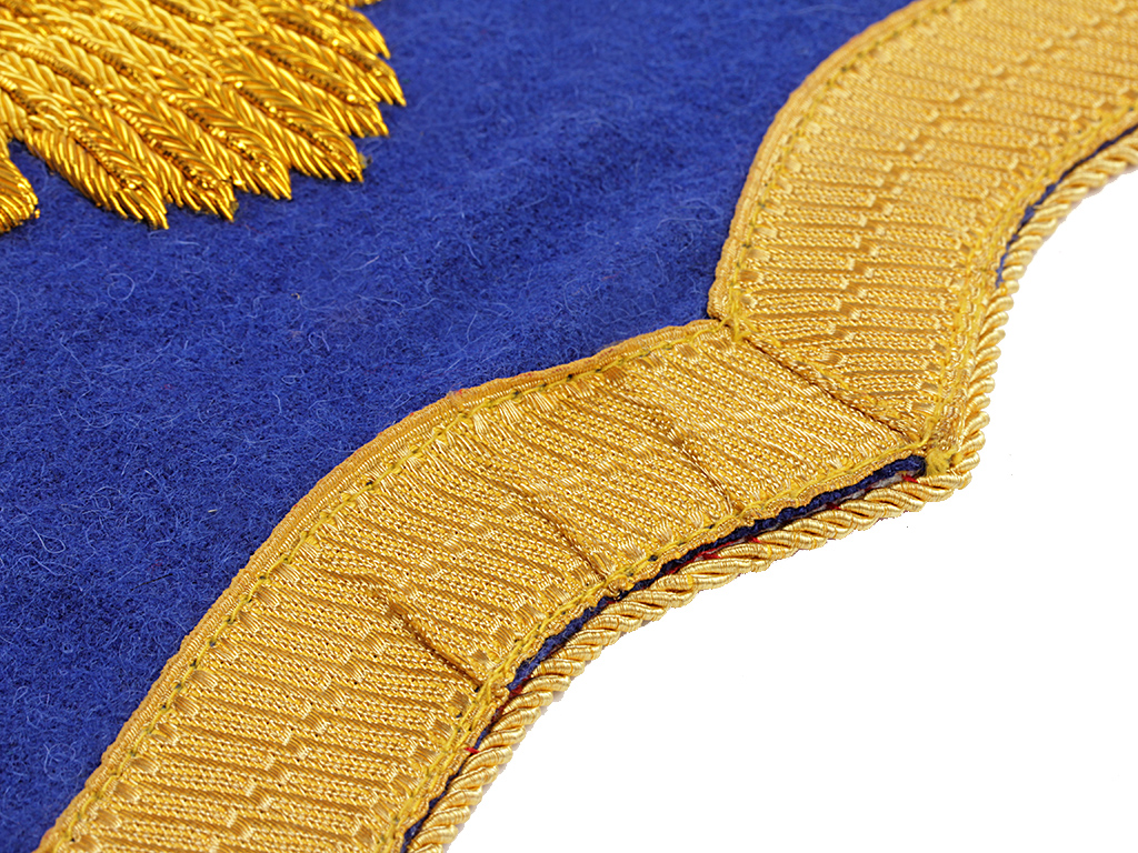 Ташка офицера Мариупольского гусарского полка имеет основу из красной кожи тонкой выделки, с верхней планкой, имеющей три латунных кольца для крепления к пасовым ремням. Крышка покрыта сукном темно-синего цвета с золотым изображением государственного герба и золотой галунной обшивкой.
