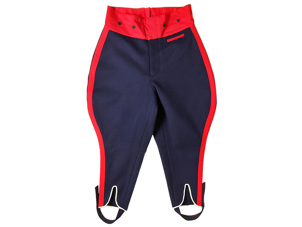 Галифе к мундиру генерала, числящегося по гвардейской пехоте и артиллерии, общегенеральскому мундиру. Копия высочайшего качества. Сшиты в полном соответствии с оригиналом из темно-синего сукна с красными лампасами.