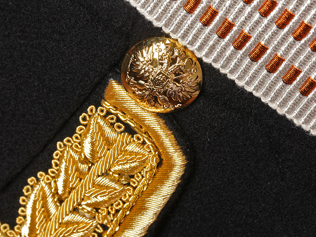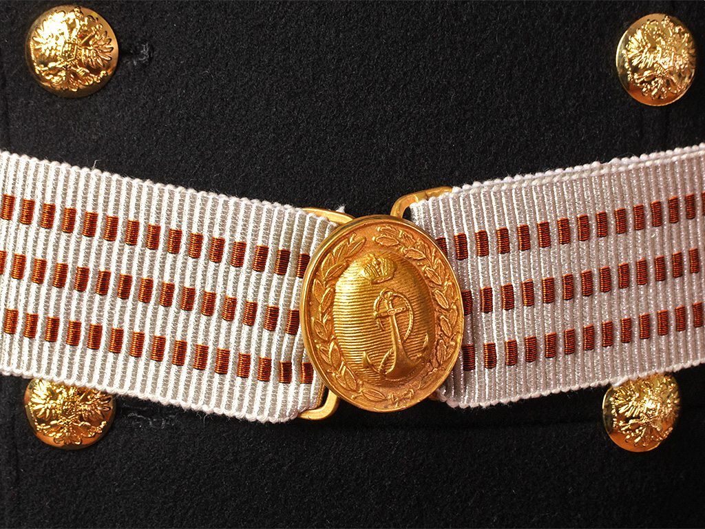 Ремень: пояс-шарф с позолоченной морской пряжкой и эполеты не входят в стоимость мундира.