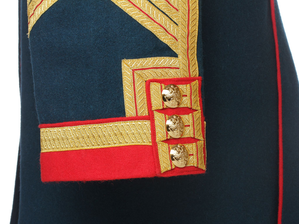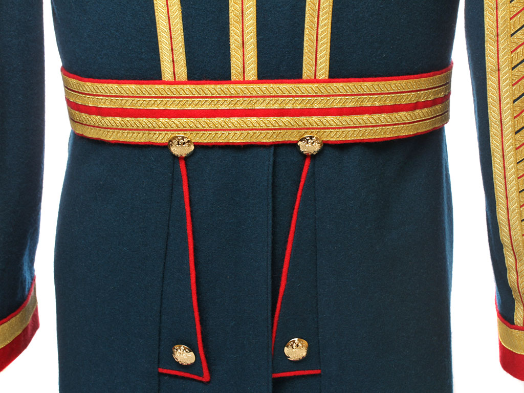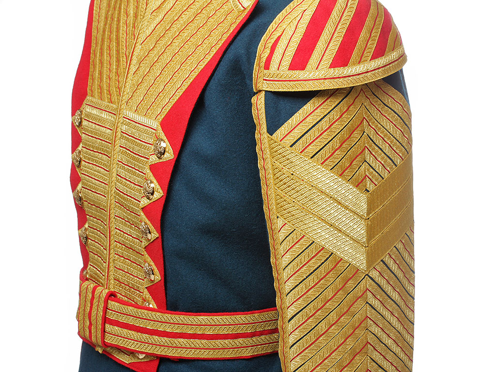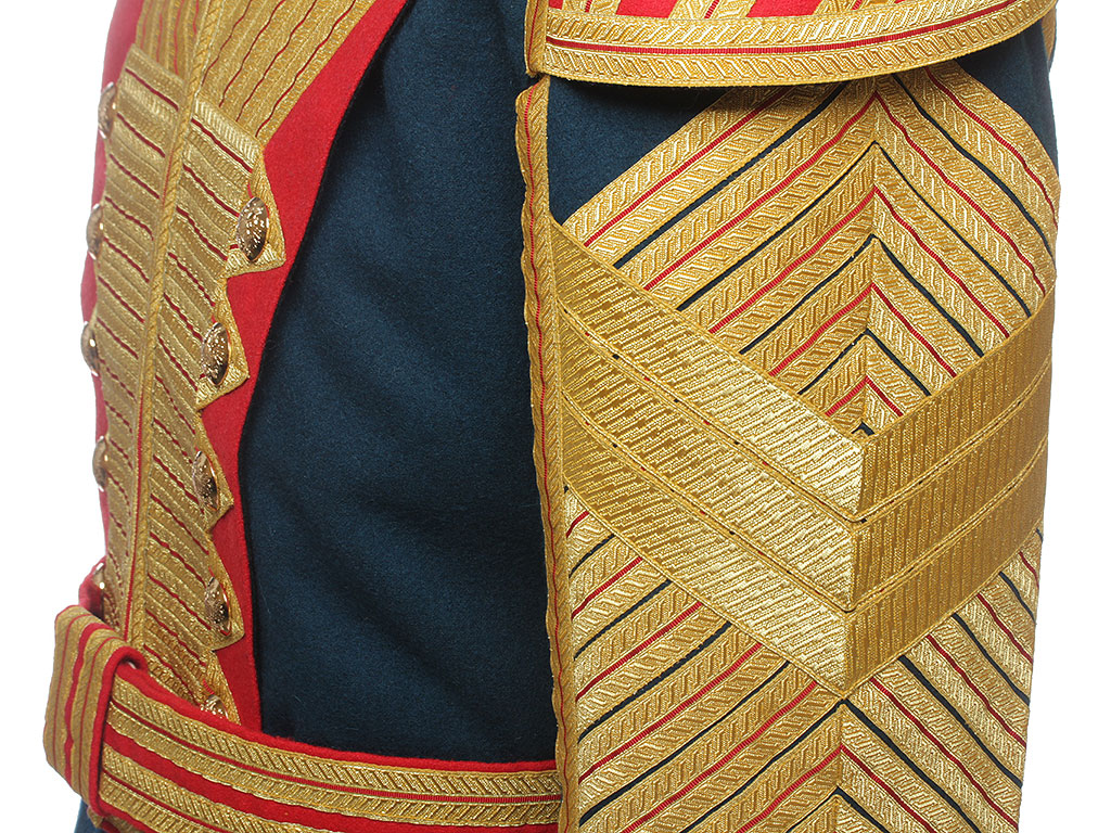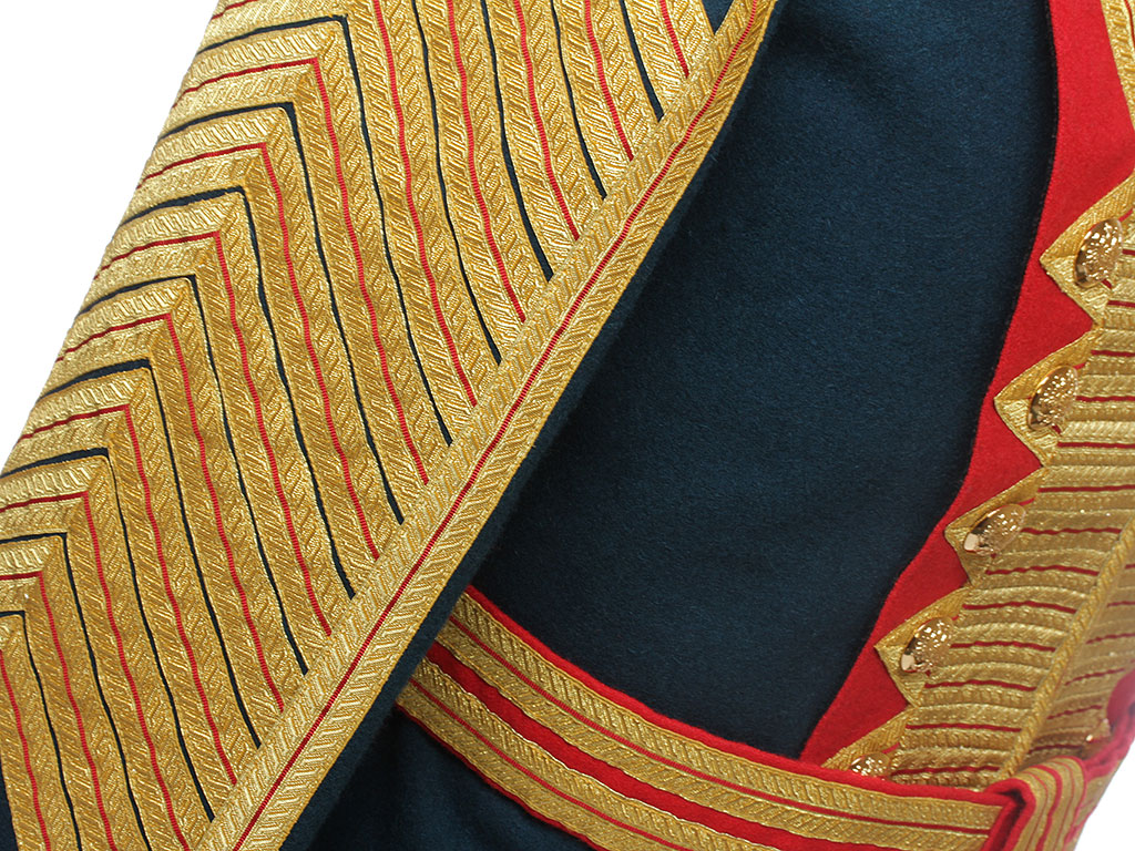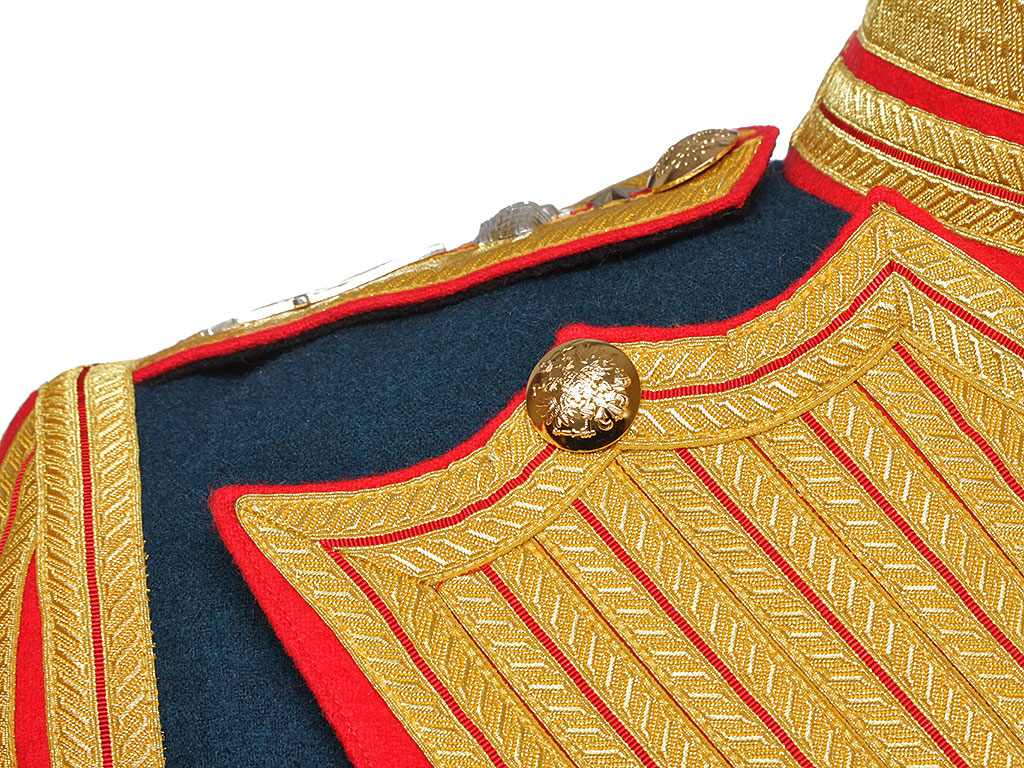 Сами галуны, которыми богато обшит мундир, специально изготовлены для реконструкции данного мундира: они отличаются от стандартного галуна, использовавшегося в армии и гвардии.