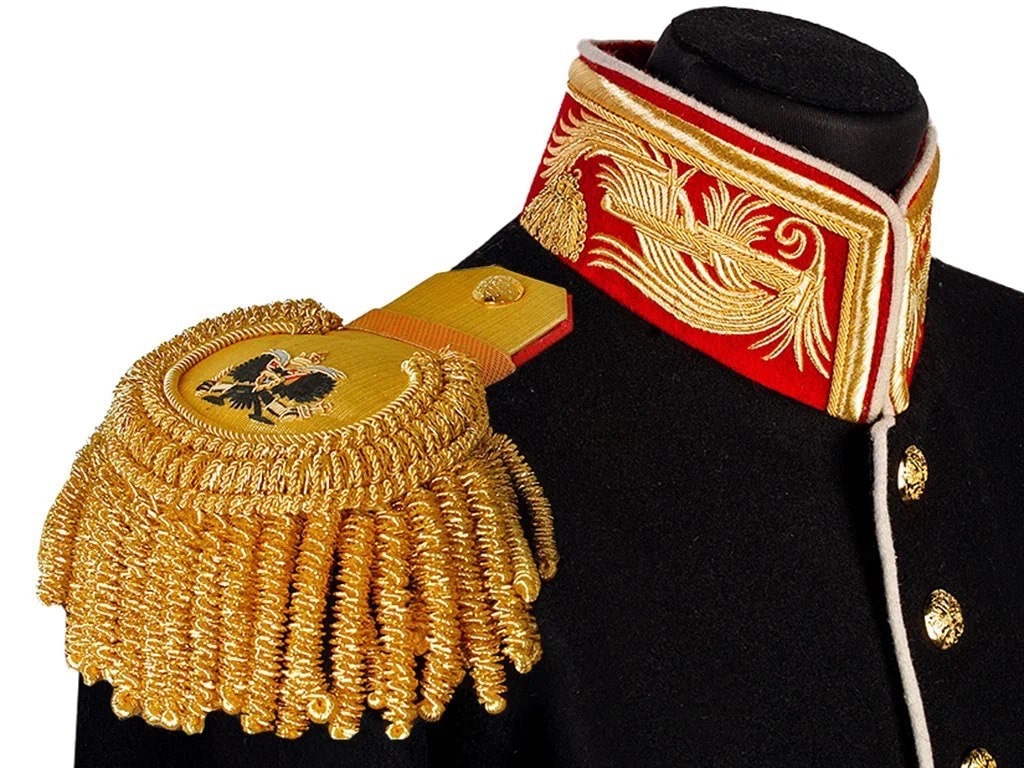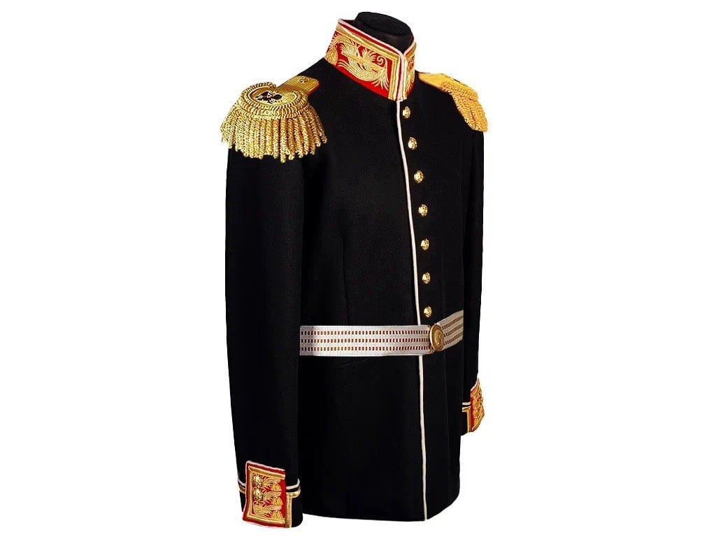 Такие мундиры полагались чинам Свиты Его Императорского Величества при свитской форме Морского Ведомства (Приказы Морского Ведомства 1884 года №15, 1899 года №83).