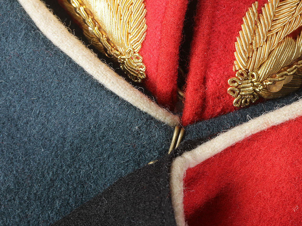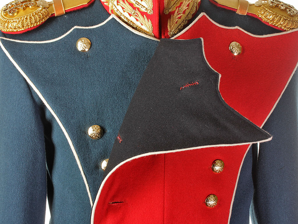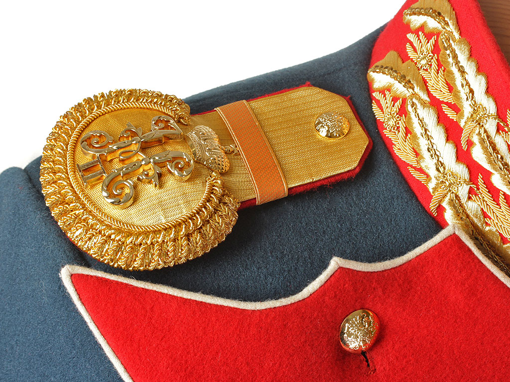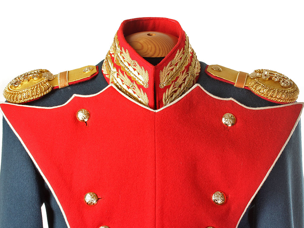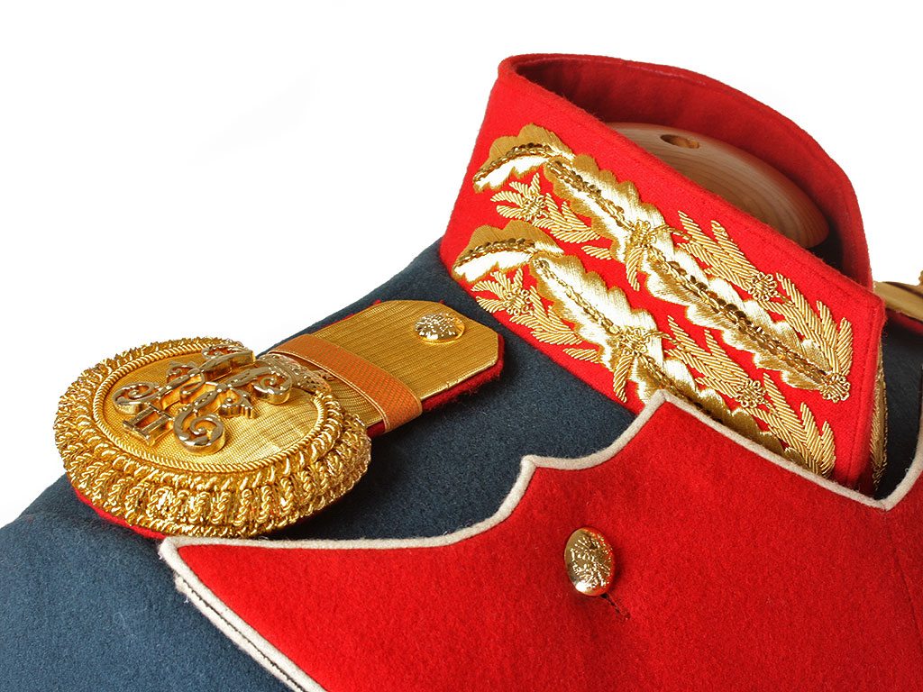 В качестве образца был использован оригинальный офицерский мундир Преображенского Лейб-гвардии полка с эполетами капитана Русской Императорской армии.