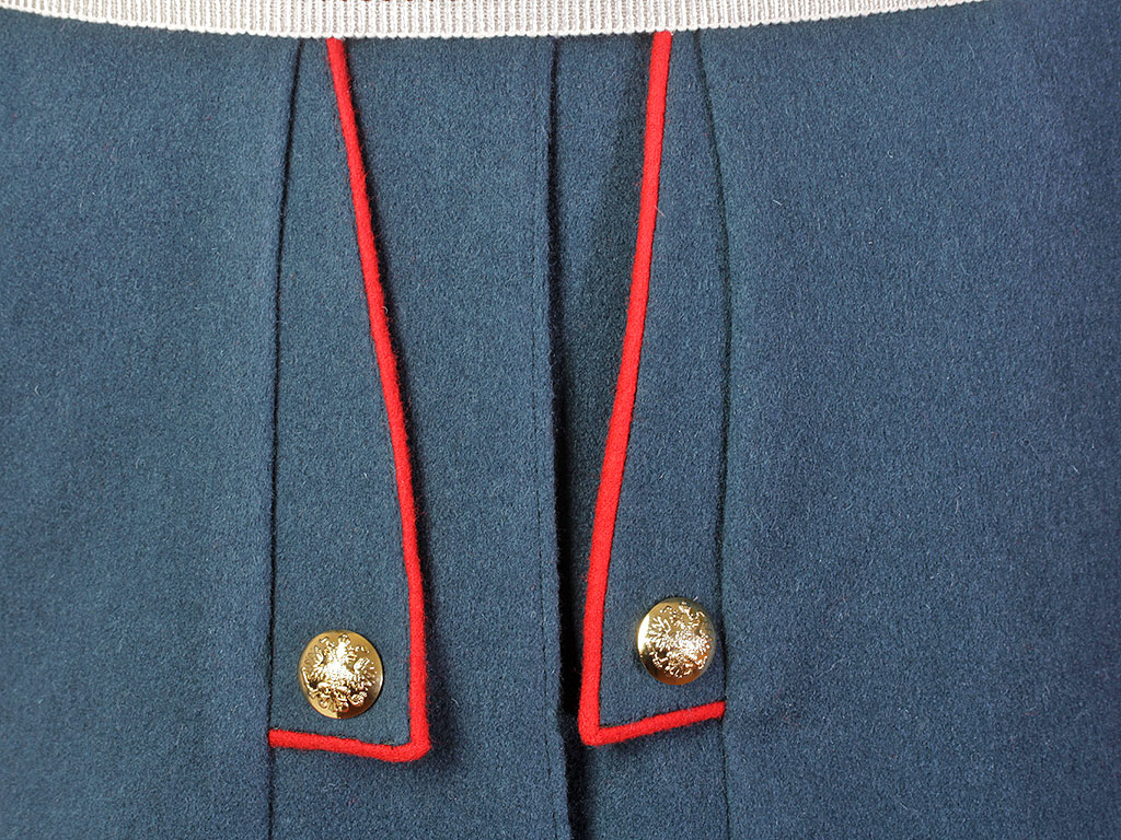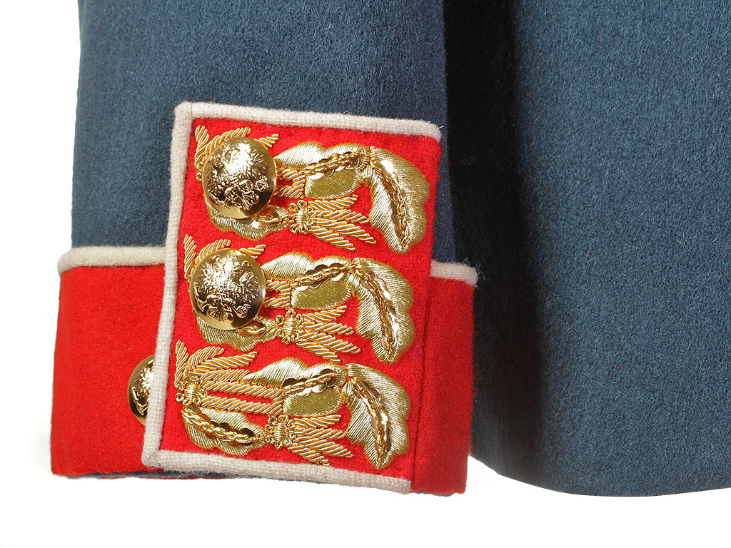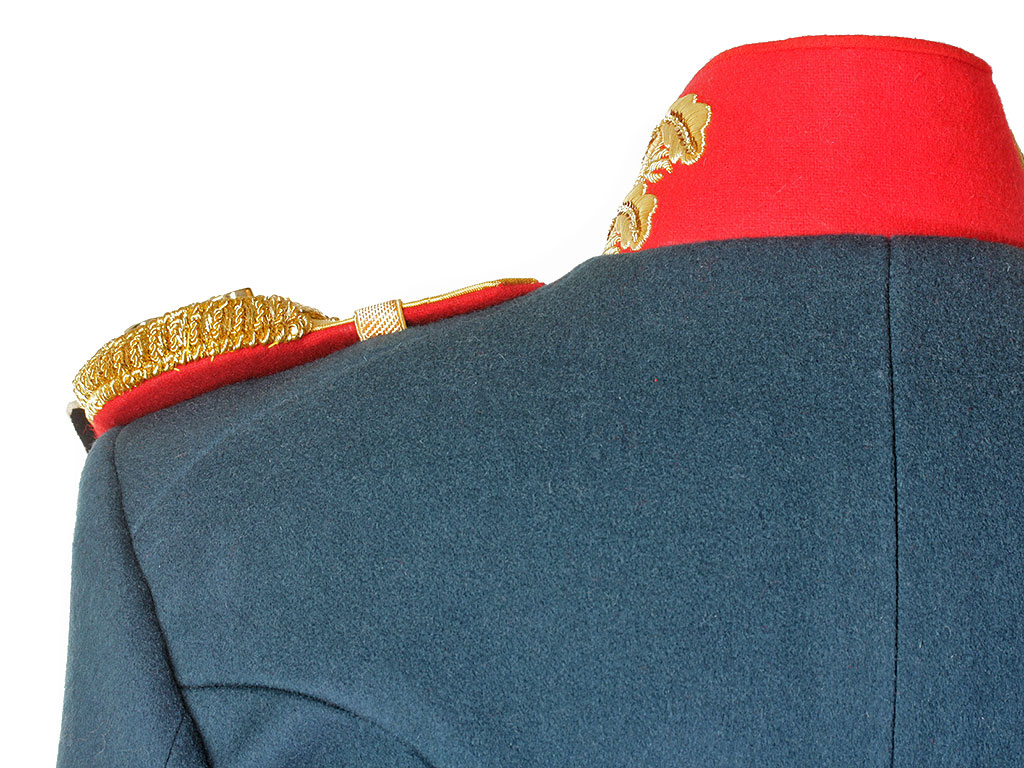 Покрой мундира двубортный, со стоячим воротником. Сам мундир застегивается на 22-мм пуговицы.