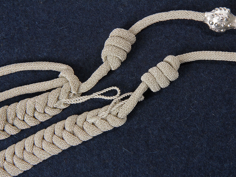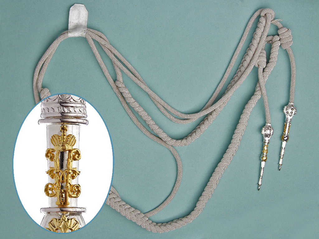 Плетеный из серебряного филигранного шнура аксельбант для контр-адмирала Свиты Е.И.В., генерал-майора Свиты Е.И.В. и флигель-адъютантов Свиты (капитан 1 ранга).