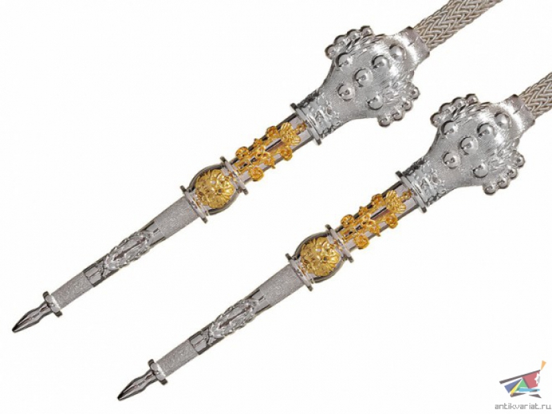 Копия высокого качества, посеребренные и позолоченные элементы вензеля Императора Николая II.