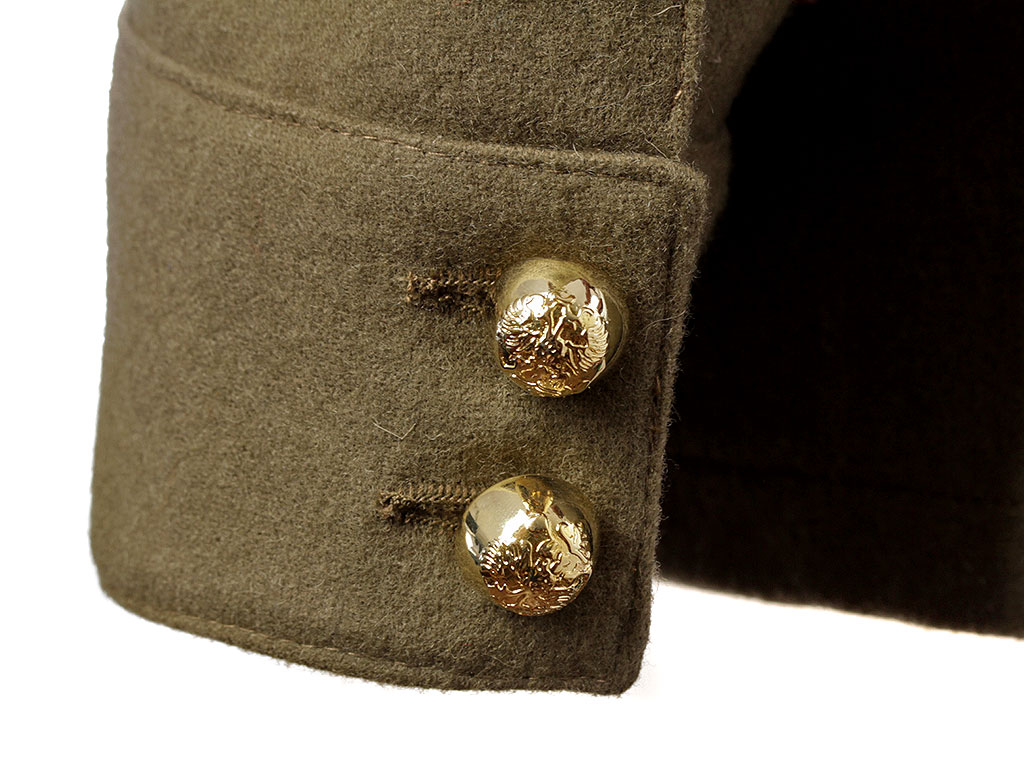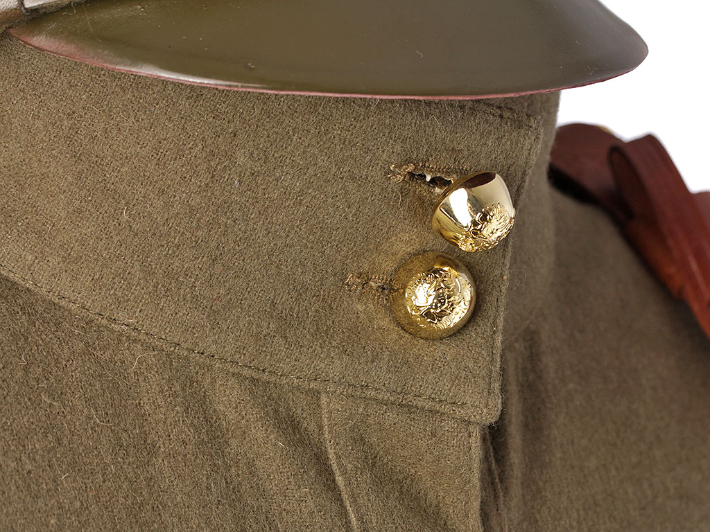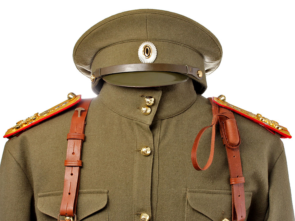 Копия исключительно высокого качества, походная офицерская форма по качеству материалов отличается от солдатской (как и в оригинале). Пуговицы - золоченые объемные гусарские, с изображением Государственного герба. На погоны установлены золоченые вензеля Императора Николая II и серебряные (противоположно прибору) звездочки. При желании комплект можно укомплектовать офицерскими погонами в любом звании.