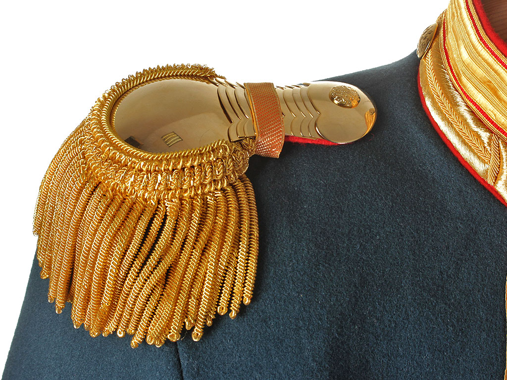 |Офицерский колет обр.1907 года армейских драгунских полков, ранее бывшими кирасирскими, с эполетами полковника 9-го драгунского Казанского полка. Россия, копия