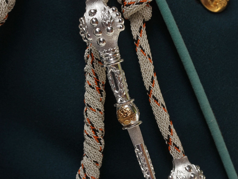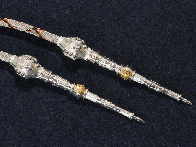 Карандаши подвески аксельбанта латунные, плотно и качественно высеребрены, миниатюрные накладные золоченые орлы.