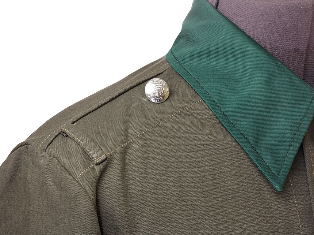 Форменный китель для рядового состава был серого цвета (feldgrau) и шился из комбинированной ткани, смеси шерсти с вискозой (искусственным шелком). Он имел четыре накладных кармана с центральной складкой. Китель застегивался на пять расположенных по центру серых металлических пуговиц, еще по одной пуговице приходилось на клапан каждого из накладных карманов - стиль карманов был заимствован с австро-венгерских форменных кителей времен Первой мировой войны. Воротник был отделан темным сине-зеленым сукном, оно же использовалось в качестве основы для национальной эмблемы, расположенной справа над клапаном правого нагрудного кармана. Такая же ткань служила основой для петлиц на воротнике, знаков отличия и принадлежности к роду войск.