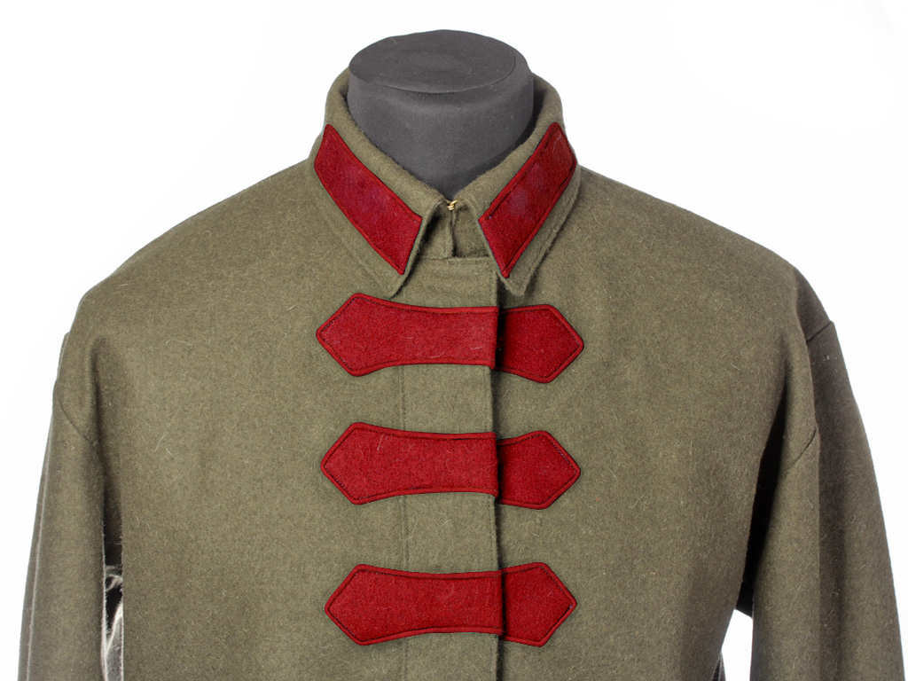 Гимнастерка со знаками различия артиллерии РККА. Петлицы и "разговоры" имеют красное (алое) поле с красным кантом, они были введены в 1922 году.