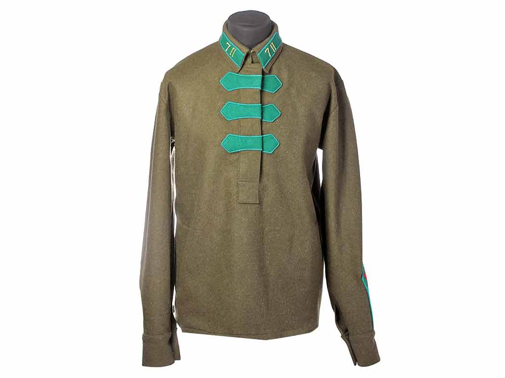 Гимнастерка со знаками различия начальника оперативного пункта ГПУ образца 1922 года. Ткань по фактуре и цвету практически полностью соответствует оригиналу, "разговоры" и клапаны со знаками различия также не отличаются от подлинных.