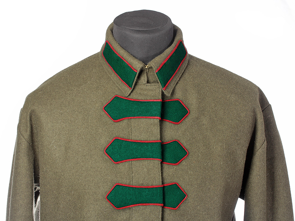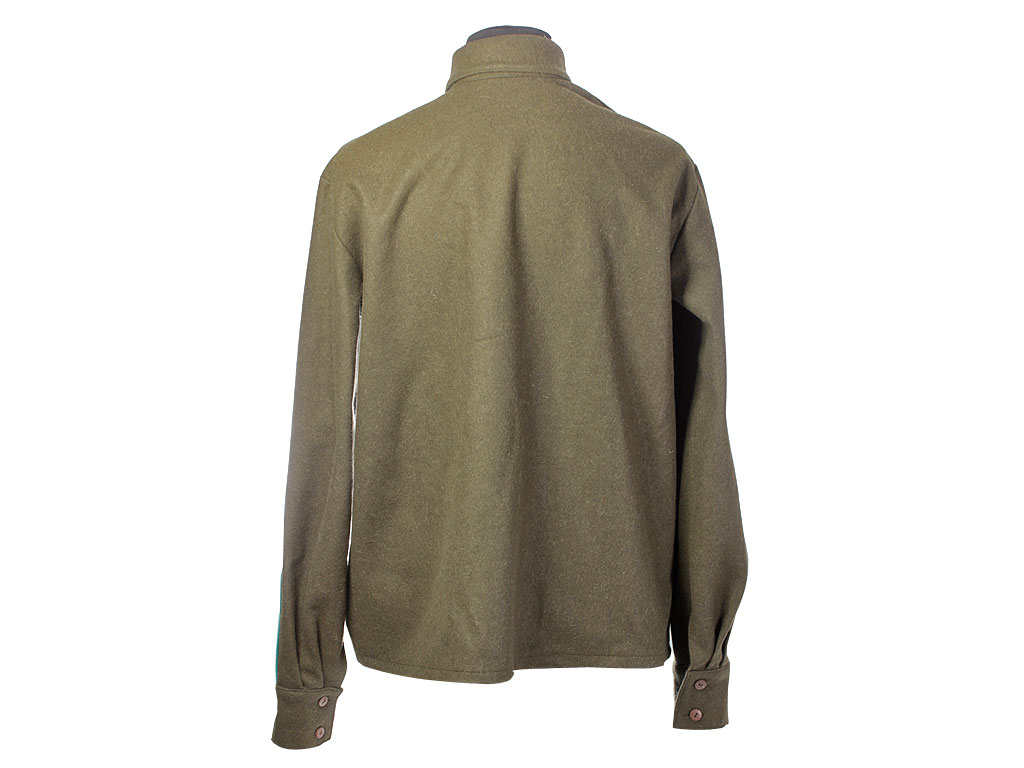 Гимнастерка со знаками различия Объединенного Государственного Политического Управления (ОГПУ). Петлицы и "разговоры" имеют зеленое поле с малиновым (краповым) кантом, они были введены в 1923 году, заменив введенные в 1922 году зеленые петлицы и "разговоры" с зеленым кантом.