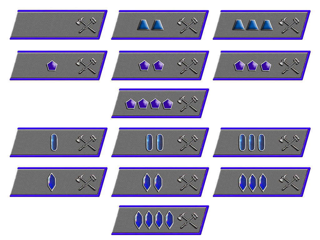 Данные эмблемы подходят для званий 1 и 2 категории: трубач-сигналист, стендерный, старший при мехлестнице, шофер, моторист, старший связист (телефонист), делопроизводитель пожарной части, командир отделения.