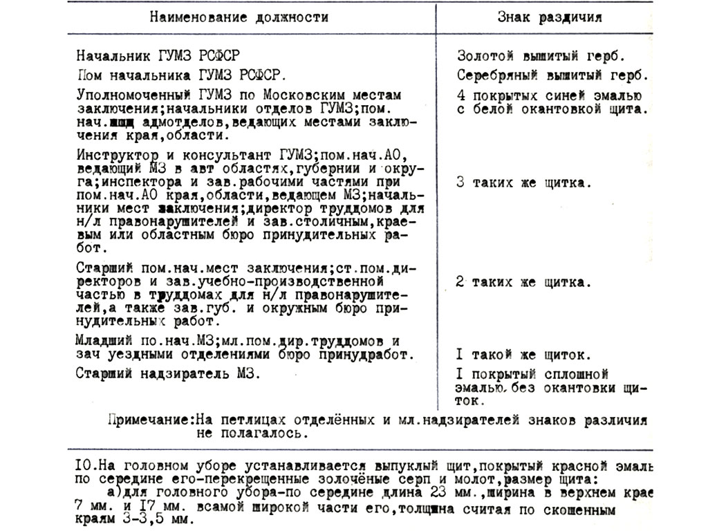 Старший пом. нач. мест заключения; ст. пом. директоров и зав. учебно-производственной частью в труддомах для н/л правонарушителей ,а также зав. губ. и окружным бюро принудительных работ.