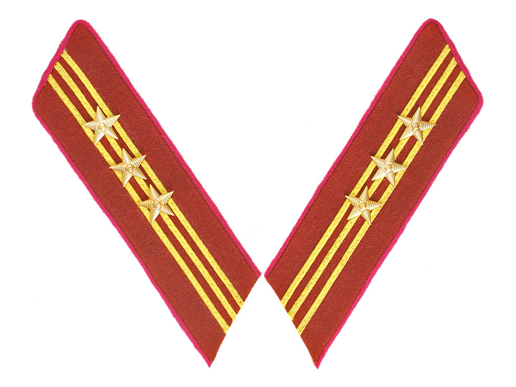 Для высшего начсостава пожарной охраны устанавливается ношение на петлицах трех полосок (вместо существующих двух полосок), согласно прилагаемым образцам.