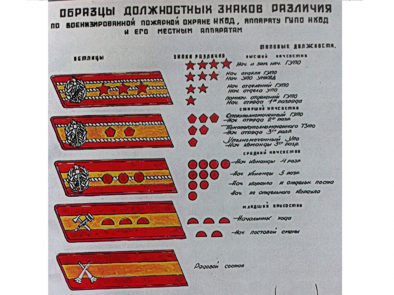 Петличные знаки Среднего начсостава Военизированной пожарной охраны НКВД, аппарата ГУПО НКВД.