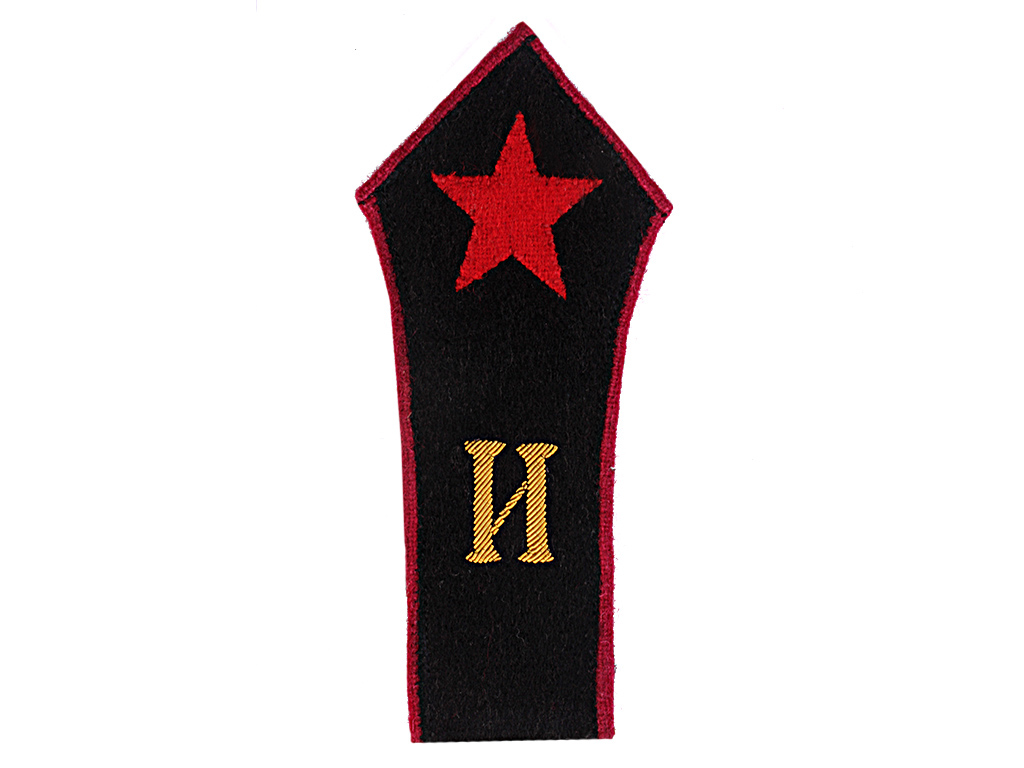 Нарукавный клапан с изображением буквы "И", вышитой золотой канителью на черном фоне с малиновой окантовкой под изображением пятиконечной звезды. Клапан данного образца был присвоен для ношения инспекторами ТО ГПУ на левом рукаве Приказом ГПУ № 258сс от 14 июня 1923 года.