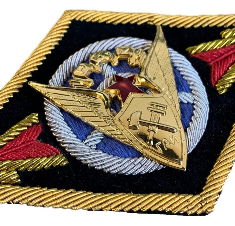 Нарукавный знак начсостава ГАИ (предположительно образец 1936 г.), представляет собой ромб из черного бархата, окантованный полосой из золотой канители. Посередине ромба располагался круг, вышитый бирюзовым шелком, на котором серебряной канителью вышивалось рулевое колесо автомобиля. По обе стороны круга горизонтальные конические стрелки, вышитые красным шелком и окаймленные по наружному краю золотой канителью.