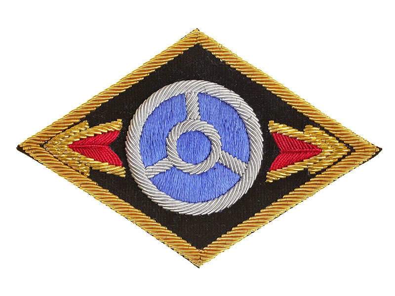 Нарукавный знак начсостава ГАИ (предположительно образец 1936 г.), представляет собой ромб из черного бархата, окантованный полосой из золотой канители. Посередине ромба располагался круг, вышитый бирюзовым шелком, на котором серебряной канителью вышивалось рулевое колесо автомобиля. По обе стороны круга горизонтальные конические стрелки, вышитые красным шелком и окаймленные по наружному краю золотой канителью.