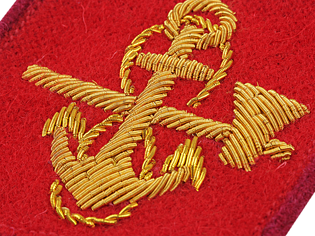 Нарукавный знак ромбовидной формы, с изображением железнодорожной эмблемы, вышитой золотой канителью на красном фоне с малиновой окантовкой. Знак данного образца был присвоен для ношения комсоставом железнодорожных частей ОГПУ на левом рукаве над нарукавным клапаном.