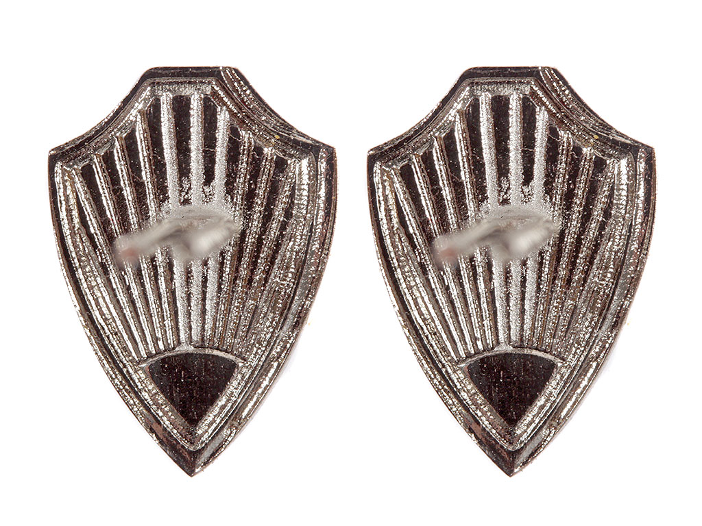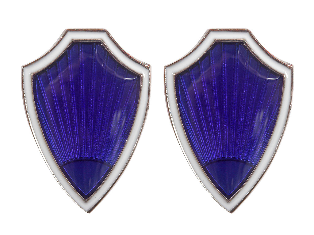 Пара петличных эмблем в виде синего геральдического щита с белой окантовкой образца 1928 года Главного Управления мест заключения РСФСР.
