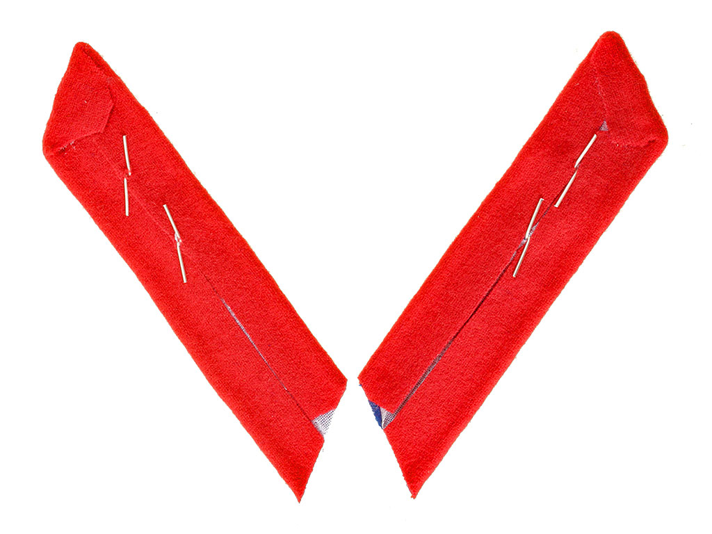 Петлицы василькового цвета в форме параллелограмма длиной 9-10 см и шириной 3,3 см окантовывались с двух продольных и одной поперечной сторон красной выпушкой, шириной 0,25 см; посередине петлицы нашивался продольный сутажный шнур шириной 0,3 см: