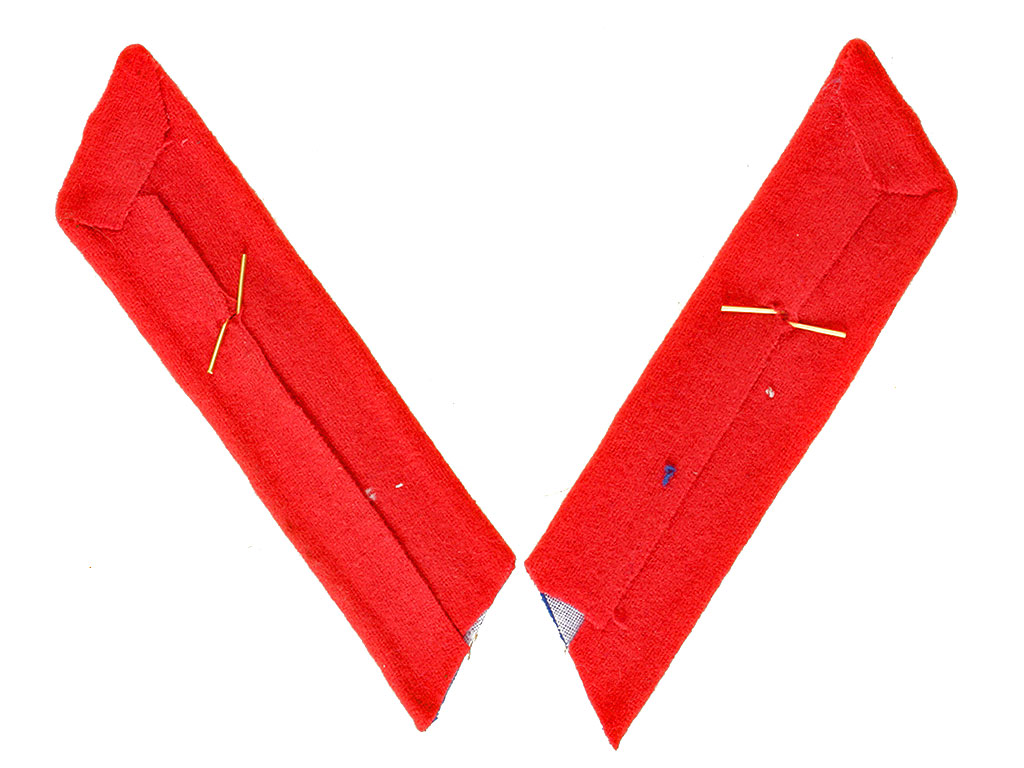Петлицы василькового цвета в форме параллелограмма длиной 9-10 см и шириной 3,3 см окантовывались с двух продольных и одной поперечной сторон красной выпушкой, шириной 0,25 см; посередине петлицы нашивался продольный сутажный шнур шириной 0,3 см:
