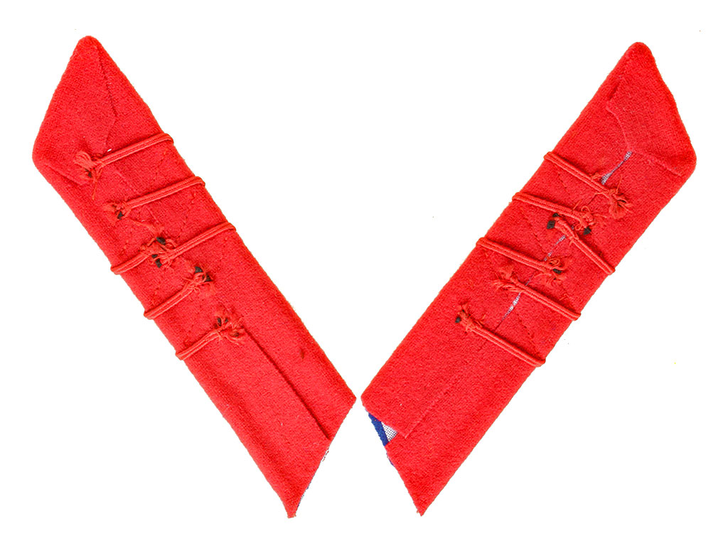 Петлицы василькового цвета в форме параллелограмма длиной 9-10 см и шириной 3,3 см окантовывались с двух продольных и одной поперечной сторон красной выпушкой, шириной 0,25 см; посередине петлицы нашивался продольный сутажный шнур шириной 0,3 см: